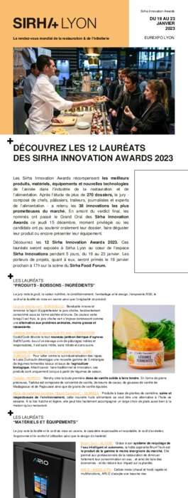 Fournisseurs 16 décembre 2022 - 14:25 Les Sirha Innovation Awards récompensent les meilleurs produits, matériels, équipements et nouvelles technologies de l’année dans l’industrie de la restauration et de l’alimentation. PDF (439 Ko) Télécharger