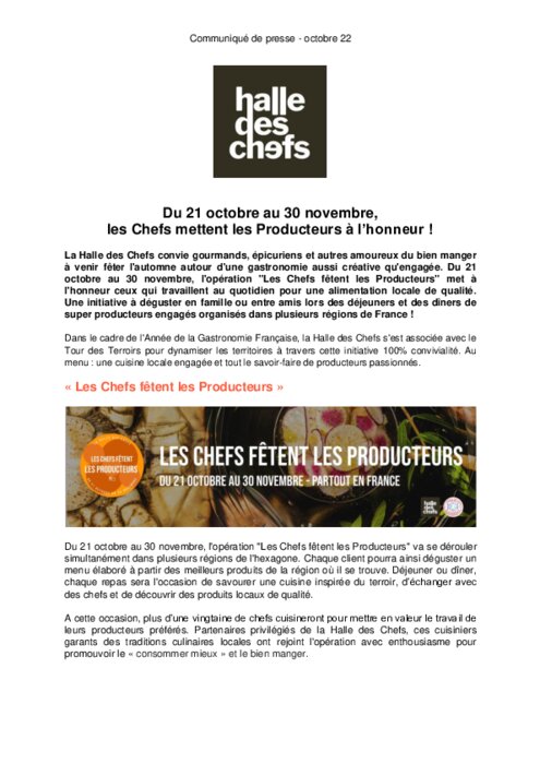 Du 21 octobre au 30 novembre, Les Chefs fêtent les Producteurs
