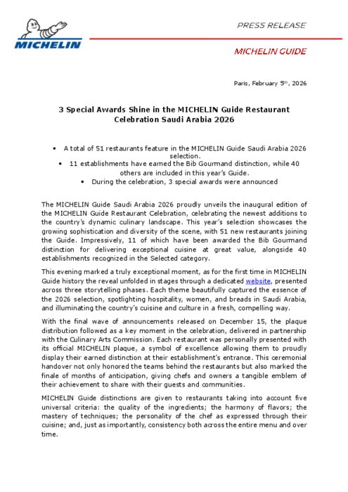 3 Prix Spéciaux brillent au cœur de la sélection du Guide Michelin Arabie saoudite 2026