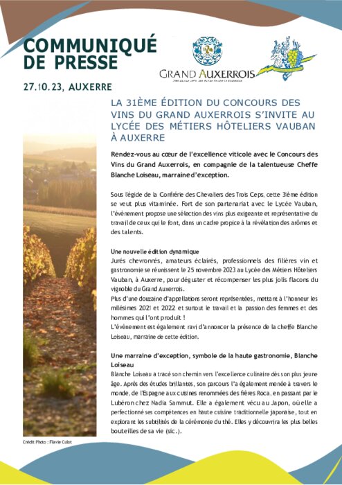 Métiers 09 novembre 2023 - 12:23 Fort de son partenariat avec le Lycée Vauban, l’évènement propose une sélection des vins plus exigeante et représentative du travail de ceux qui le font, dans un cadre propice à la révélation des arômes et des talents. PDF (228 Ko) Télécharger