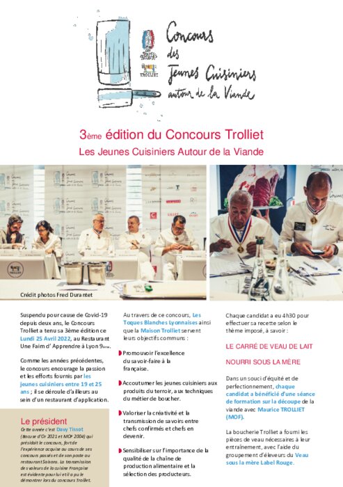 Métiers 18 mai 2022 - 13:00 Comme les années précédentes, le concours encourage la passion et les efforts fournis par les jeunes cuisiniers entre 19 et 25 ans ; il se déroule d’ailleurs au sein d’un restaurant d’application. PDF (519 Ko) Télécharger