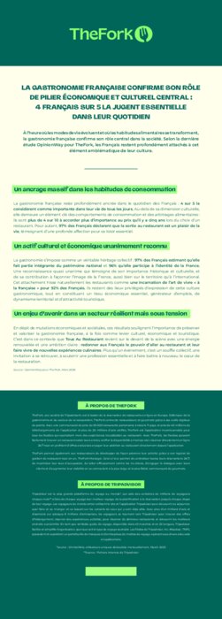 4 Français sur 5 jugent la gastronomie française essentielle dans leur quotidien (Etude TheFork)
