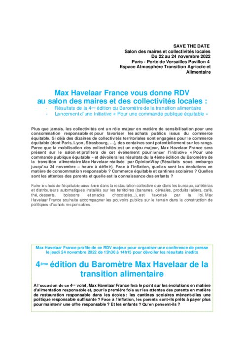 4ème édition du Baromètre Max Havelaar de la transition alimentaire