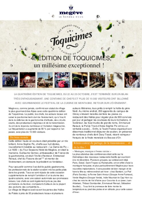 Megève a, comme jamais, confirmé son statut de village le plus gourmand des Alpes avec cette quatrième édition de Toquicimes. Le public, les chefs, les acteurs locaux ont salué le positionnement clair de l’évènement, qui s’inscrit dans la défense de la gastronomie d’altitude, des circuits courts, des producteurs régionaux et de la transmission.