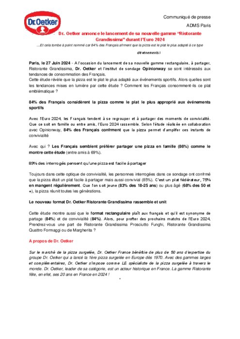 Avec l’Euro 2024, les Français tendent à se regrouper et à partager des moments de convivialité. Que ce soit en famille ou entre amis, l’Euro 2024 rassemble. Selon l’étude réalisée en collaboration avec Opinionway, 84% des Français confirment que la pizza permet d’amplifier ces instants de convivialité