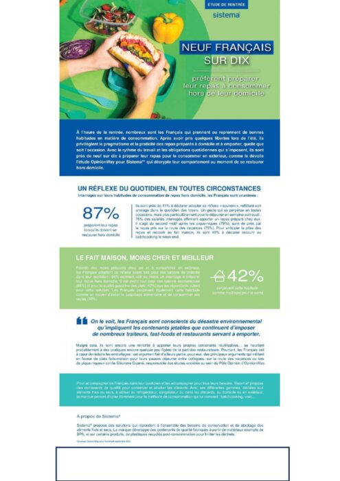 9 Français sur 10 préfèrent préparer leurs repas à consommer hors domicile (Etude Sistema)