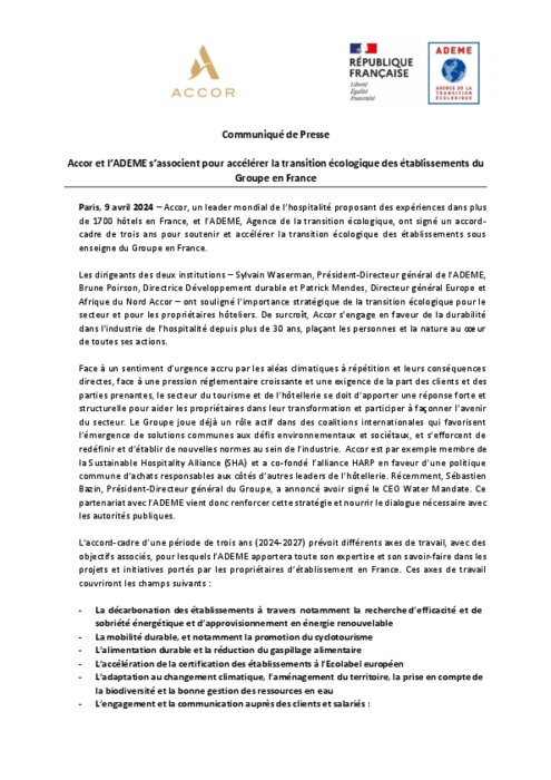 Accor et l’ADEME s’associent pour accélérer la transition écologique