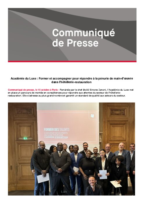 Parrainée par le chef étoilé Simone Zanoni, l’Académie du Luxe met en place un parcours de montée en compétences pour répondre aux attentes du secteur de l’hôtellerie-restauration. Elle s’adresse au plus grand nombre et garantit un standard de qualité aux acteurs du secteur.