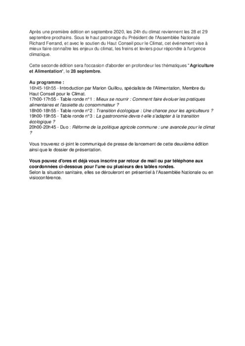 Après une première édition en septembre 2020, les 24h du climat reviennent les 28 et 29 septembre prochains. Sous le haut patronage du Président de l'Assemblée Nationale Richard Ferrand, et avec le soutien du Haut Conseil pour le Climat, cet événement vise à mieux faire connaître les enjeux du climat, les freins et leviers pour répondre à l'urgence climatique.