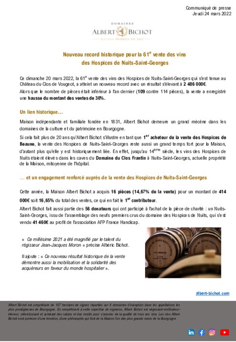 Métiers 24 mars 2022 - 12:44 Alors que le nombre de pièces était inférieur à l’an dernier (109 contre 114 pièces), la vente a enregistré une hausse du montant des ventes de 30%. PDF (114 Ko) Télécharger