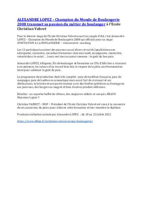 Métiers 27 juillet 2021 - 10:06 Les 11 participants avaient des parcours aussi divers et variés (qualiticienne en aérospatial, cuisinière, consultant formateur chez microsoft, enseignante, couturière, retraité dans le social…) mais ont tous un point commun : le goût du bon pain. PDF (136 Ko) Télécharger