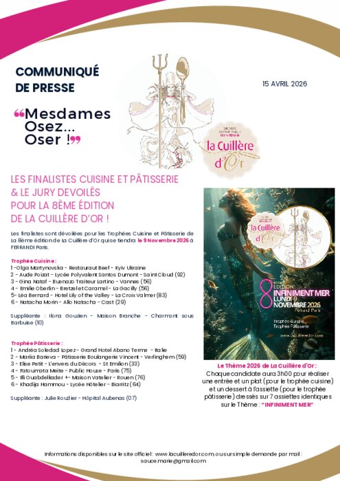 Annonce du Jury et des finalistes : La Cuillère d'Or 2026