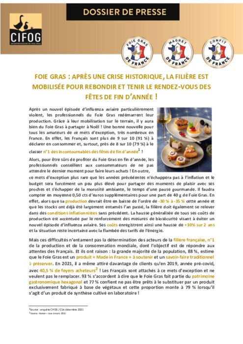 Après une crise historique, la filière Foie Gras est mobilisée pour rebondir (CIFOG)
