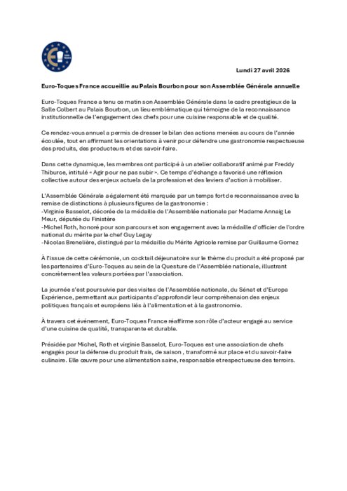 Assemblée Générale Euro-Toques France 2026