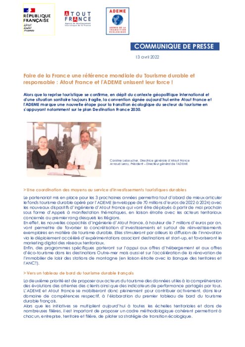 d’une situation sanitaire toujours fragile, la convention signée aujourd’hui entre Atout France et