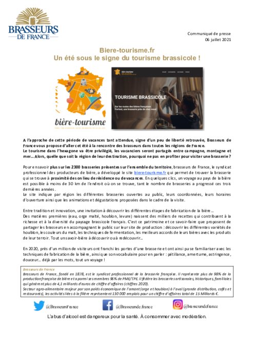 Pour en savoir plus sur les 2300 brasseries présentes sur l’ensemble du territoire, brasseurs de France, le syndicat professionnel des producteurs de bière, a développé le site biere-tourisme.fr qui permet de trouver la brasserie qui se trouve à proximité de son lieu de résidence ou de vacances. En quelques clics, un voyage au pays de la bière est possible à moins de 30 km de l’endroit où on se trouve, tant le nombre de brasseries a progressé ces trois dernières années.