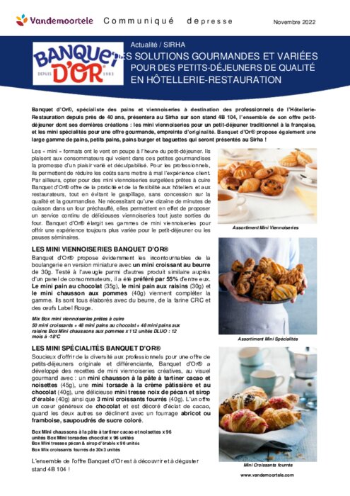 Fournisseurs 24 novembre 2022 - 16:05 Les « mini » formats ont le vent en poupe à l’heure du petit-déjeuner. PDF (205 Ko) Télécharger