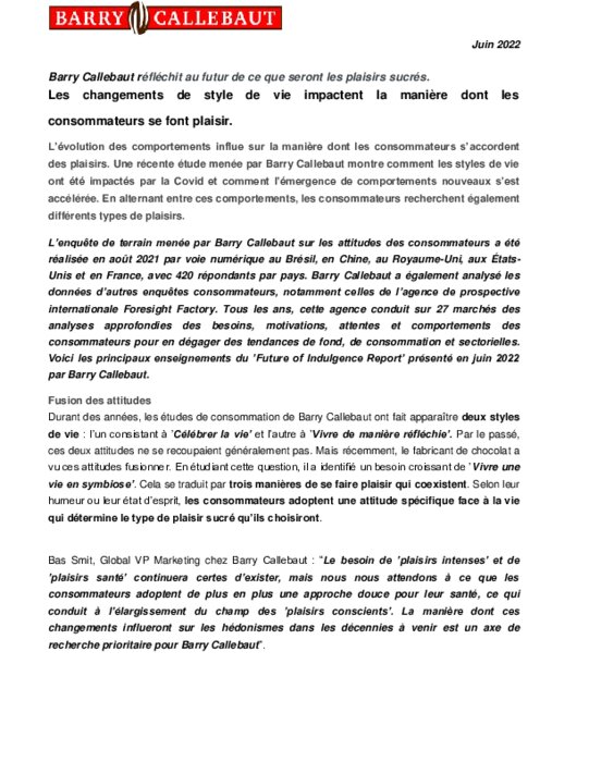 Barry Callebaut réfléchit au futur des plaisirs sucrés et dévoile son rapport intitulé "The Future of Indulgence"