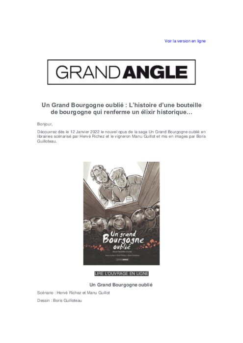 Dès le 12 Janvier 2022 le nouvel opus de la saga Un Grand Bourgogne oublié en librairies scénarisé par Hervé Richez et le vigneron Manu Guillot et mis en images par Boris Guilloteau.