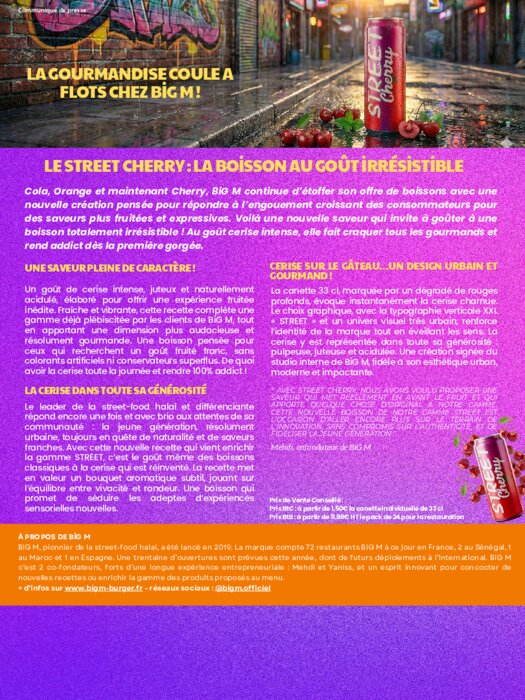 Big M poursuit le développement de son offre avec une nouvelle recette à la cerise, qui vient enrichir la gamme proposée dans ses 72 restaurants en France. L’enseigne prévoit une trentaine de nouvelles ouvertures cette année et affiche l’objectif d’atteindre 100 établissements en 2026.