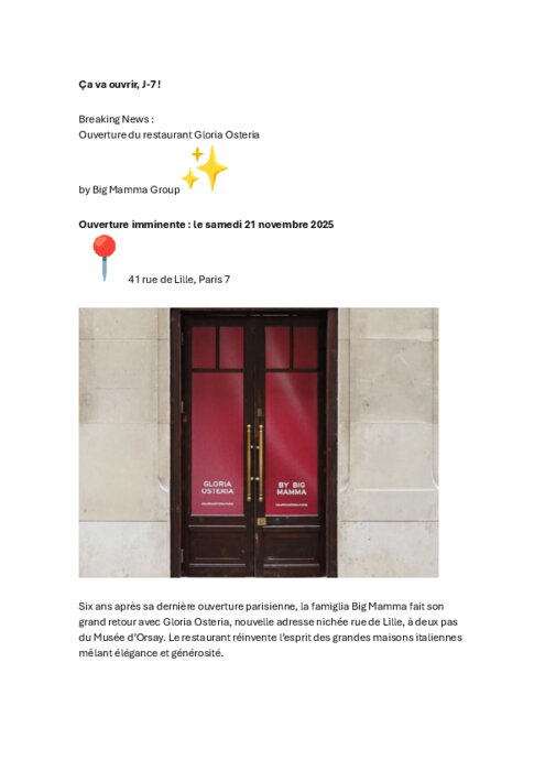 Big Mamma ouvre son nouveau restaurant : Gloria Osteria
