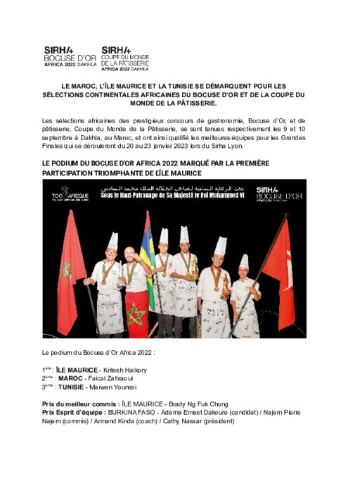 Dernière étape des sélections continentales, le Bocuse d’Or Africa révèle les derniers chefs qualifiés pour la Grande Finale au terme de 5h35 d’épreuves pour réaliser deux thèmes : une assiette basée sur la dorade et un plateau mettant en lumière la selle d’agneau.