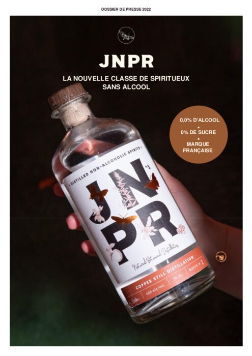Fournisseurs 16 novembre 2022 - 10:27 Aboutissement d’un travail minutieux, JNPR ce sont donc des spiritueux d’un nouveau genre, made in France, issus d’une distillation, sans sucre et avec 0,0% d’alcool. PDF (879 Ko) Télécharger