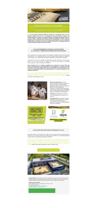 Idyie est une école de formation dédiée aux métiers de la boulangerie, basée à Aix-en-Provence. Créée en 2021 par ANGE, 2e boulanger de France qui cherchait à former à ces métiers essentiels, le succès de la première promotion de CAP Boulanger engage l'école vers un avenir radieux : ouverture d'un nouveau CAP PSR et installation de l'école à Lille et à Bordeaux dès la rentrée 2022-2023.