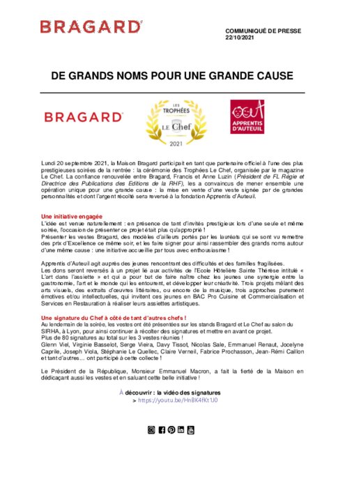 Lors de la soirée des Trophées Le Chef et pendant le SIRHA, 3 vestes ont été mises à disposition afin que des Professionnels de la Gastronomie, des Métiers de bouche et de la Restauration puissent les dédicacer. Que de belles signatures : Guillaume Gomez, Virginie Basselot, Emmanuel Renaut, Davy Tissot et tant d’autres … et Emmanuel Macron !