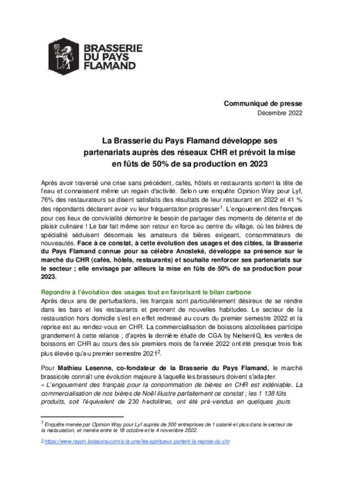 Fournisseurs 20 décembre 2022 - 10:17 Après avoir traversé une crise sans précédent, cafés, hôtels et restaurants sortent la tête de l’eau et connaissent même un regain d'activité. PDF (170 Ko) Télécharger