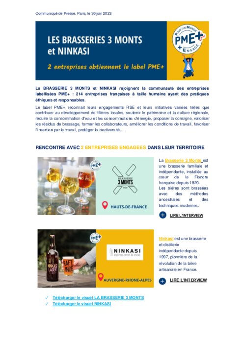 Le label PME+ reconnait leurs engagements RSE et leurs initiatives variées telles que contribuer au développement de filières locales, soutenir le patrimoine et la culture régionale, réduire la consommation d’eau et les consommations d’énergie, proposer la consigne, valoriser les résidus de brassage, former les collaborateurs, améliorer les conditions de travail, favoriser l’insertion par le travail, protéger la biodiversité.