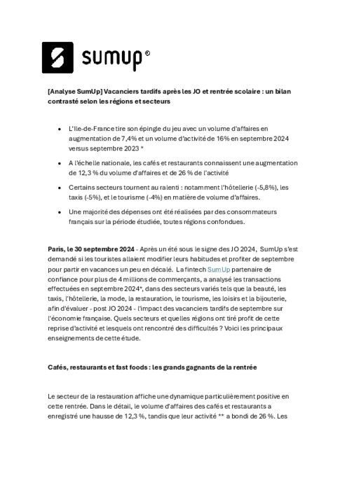 Le secteur de la restauration affiche une dynamique particulièrement positive en cette rentrée. Dans le détail, le volume d'affaires des cafés et restaurants a enregistré une hausse de 12,3 %, tandis que leur activité a bondi de 26 %. Les régions qui tirent le plus leur épingle du jeu - en termes de volume d’affaires - sont l'Ile-de-France (+31,9 %) et le Grand Est (+31,6 %).