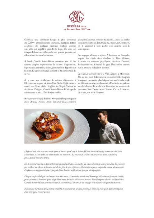 Chaque année, Gault et Millau repère et déniche les talents qui feront la gastronomie du futur. À l’occasion de son palmarès 2025, le guide a dévoilé sa sélection des "Grands de Demain". Parmi les lauréats figure Camille Saint-M'leux, chef du restaurant Geoélia, situé dans le 16ème arrondissement de Paris.