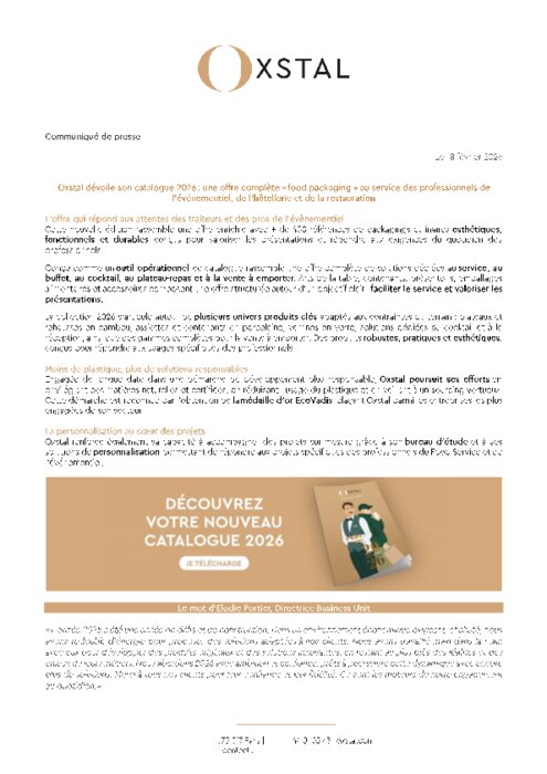 Catalogue Oxstal 2026, une offre complète de solutions de food packaging