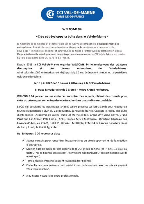 La Chambre de commerce et d’industrie du Val-de-Marne accompagne le développement des entreprises et fournit des services adaptés aux étapes de la vie des entreprises pour créer, développer, transmettre, exporter et innover. Elle participe à l’attractivité du territoire en aidant l’implantation et le développement des entreprises et commerces.