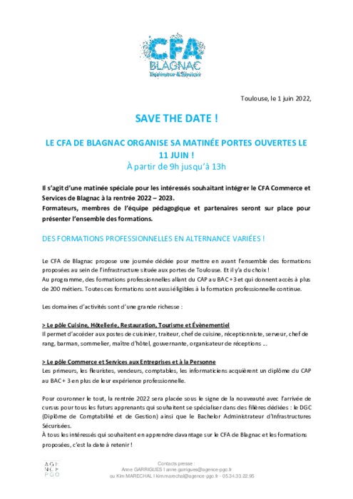 Il s’agit d’une matinée spéciale pour les intéressés souhaitant intégrer le CFA Commerce et Services de Blagnac à la rentrée 2022 – 2023.