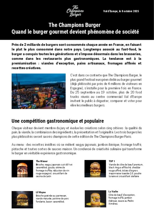 The Champions Burger à Val d'Europe jusqu'au 19 octobre
