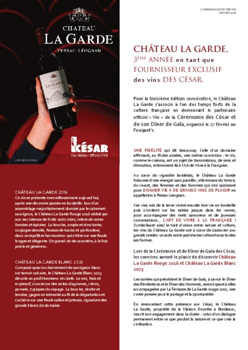 Une fidélité hautement significative. Celle d’un domaine qui affirme, au fil des années, une conviction constante : le vin, à l’instar du cinéma, constitue un vecteur de transmission, de sens et d’émotion, intimement lié à l’Art de Vivre à la Française.