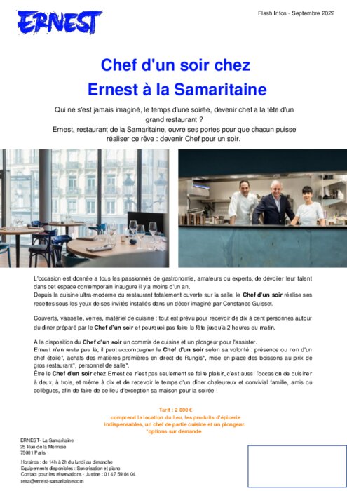 Chef d'un soir chez Ernest à la Samaritaine