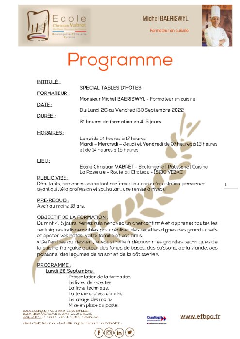 Le Chef Michel BAERISWYL propose une formation spéciale cuisson sous vide & basse température