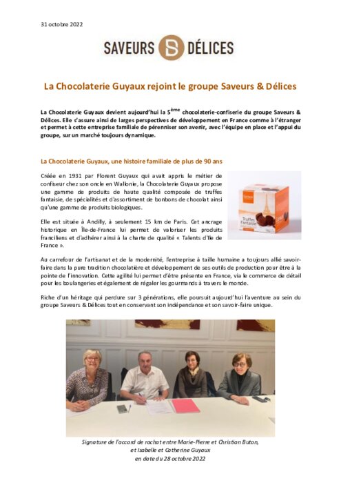 Fournisseurs 31 octobre 2022 - 16:33 Elle s’assure ainsi de larges perspectives de développement en France comme à l’étranger et permet à cette entreprise familiale de pérenniser son avenir, avec l’équipe en place et l’appui du groupe, sur un marché toujours dynamique. PDF (206 Ko) Télécharger