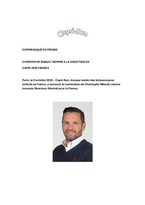 Christophe Ribault succède à Isabelle Bravard, qui a accompagné la transformation de Capri-Sun en France depuis 2023, marquée notamment par le lancement de la filiale française et la séparation avec le groupe Coca-Cola Europacific Partners (CCEP). Après ce mandat réussi, elle poursuit sa carrière dans l’industrie agro-alimentaire.