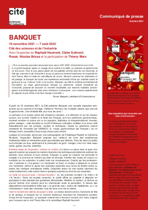 La Cité des sciences et de l'industrie présente son exposition temporaire : Banquet