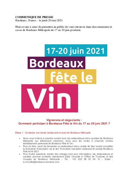 Cette année, Bordeaux Fête le Vin ne ressemblera pas aux éditions précédentes en raison des contraintes sanitaires imposées par la COVID-19. En effet, il n’y aura pas de grand rassemblement sur les quais de la Garonne, ni de pavillon des appellations bordelaises permettant aux amateurs de Vins de Bordeaux d’échanger avec vous.