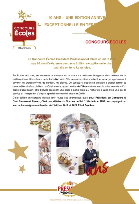 Au fil des éditions, le concours Écoles Président Professionnel a toujours eu à cœur de valoriser l’exigence des métiers de la restauration et l’importance de la formation aux côtés de ceux qui transmettent, et ceux qui apprennent à devenir les professionnels de demain, les élèves.