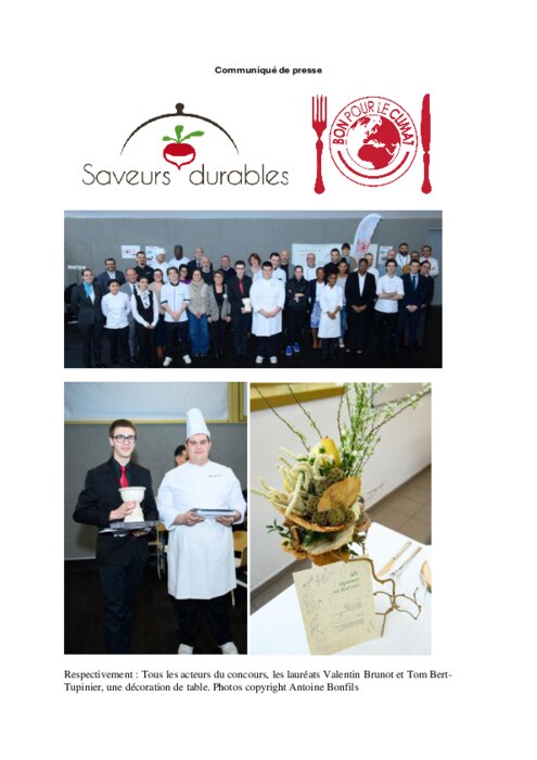 Métiers 21 mars 2024 - 15:27 La 11e édition du concours Saveurs durables, organisé par Bon pour le Climat en partenariat avec Metro au Lycée du Val de Bièvres à Gentilly vient d’avoir lieu. PDF (337 Ko) Télécharger