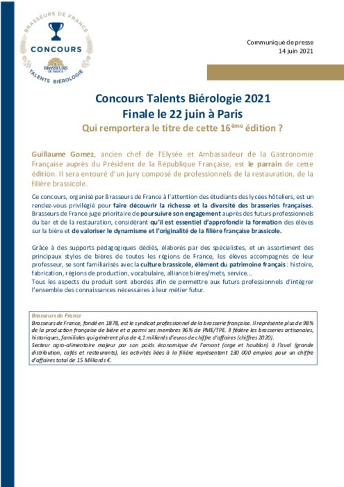 Les 8 lauréats sélectionnés lors des quatre demi-finales régionales vont se présenter auprès d’un jury d’experts autour de quatre épreuves destinées à valoriser leurs connaissances sur la bière et son univers : analyse sensorielle, alliances bières/mets, cocktail, service pression et bouteille.