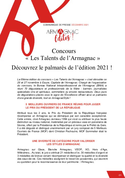 Concours "Les Talents de l'Armagnac" : palmarès de l'édition 2021