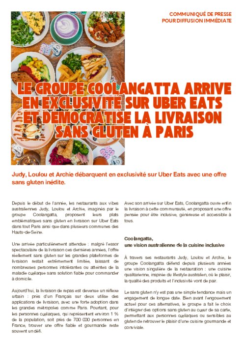 Depuis le début de l’année, les restaurants aux vibes australiennes Judy, Loulou et Archie, imaginés par le groupe Coolangatta, proposent leurs plats emblématiques sans gluten en livraison sur Uber Eats dans tout Paris ainsi que dans plusieurs communes des Hauts-de-Seine.