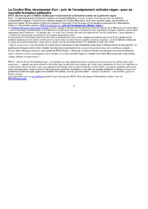 Le Cordon Bleu récompensé d'un « prix de l'enseignement culinaire végan » pour sa nouvelle formation pâtissière